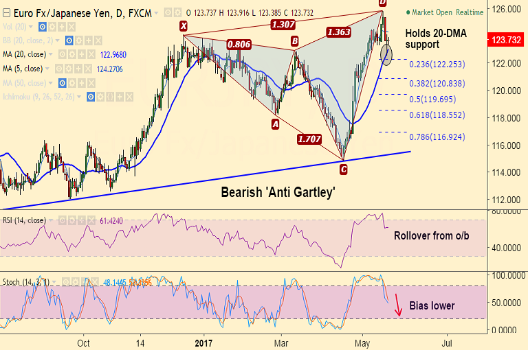 - Bearish 'Anti Gartley' pattern on daily charts, adds downside bias.