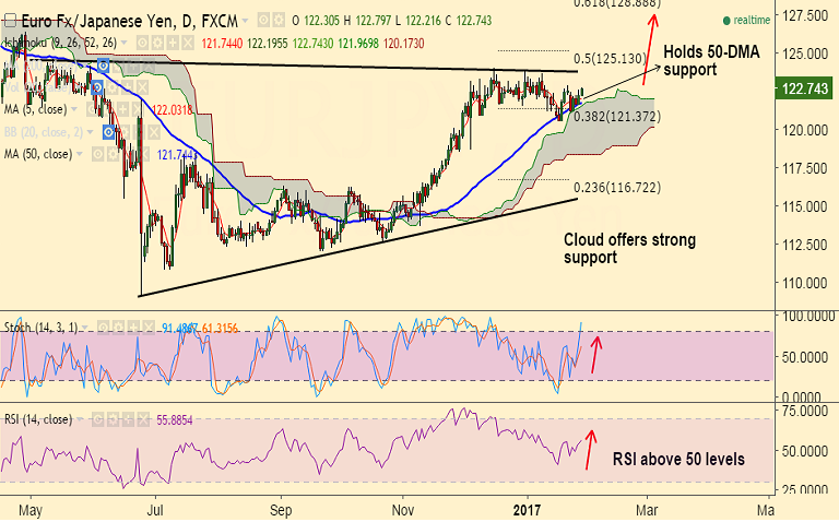 - EUR/JPY has bounced off 50-DMA support at 121.63 on Thursday's trade.