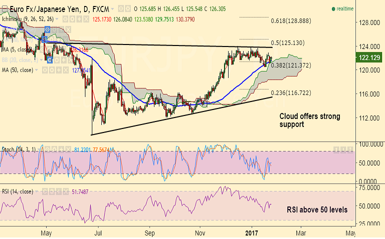 - EUR/JPY fails to close below 50-DMA which is strong support, currently at 121.53.