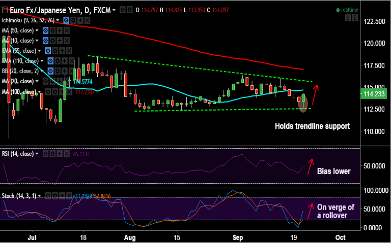 - EUR/JPY downside finds strong support by trendline at 112.51. The pair has taken trendline support and bounced higher.