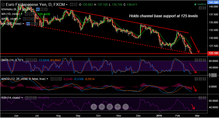 - EUR/JPY has taken strong support at 125 which is base of the 8 month downward channel.