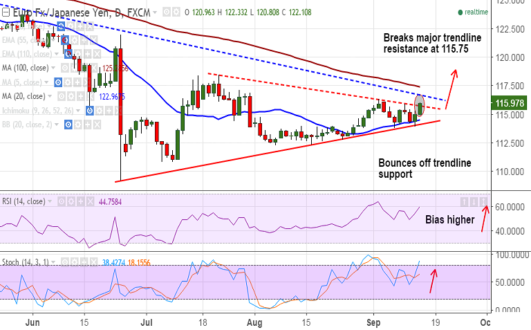 - The pair has broken major resistance at 115.75 and intraday bias is higher.