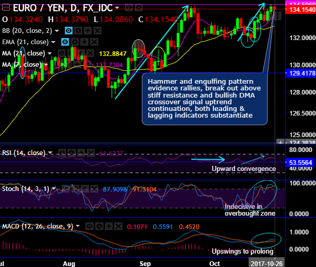 On the contrary, we also foresee the rallies likely to extend further upon break-out above 132.3778 levels and bullish EMA crossover indicates the extension of the further uptrend.