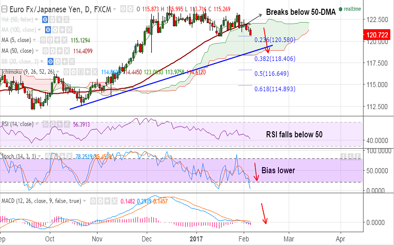 - Short-term bias in the pair has turned bearish after break below 50-DMA.