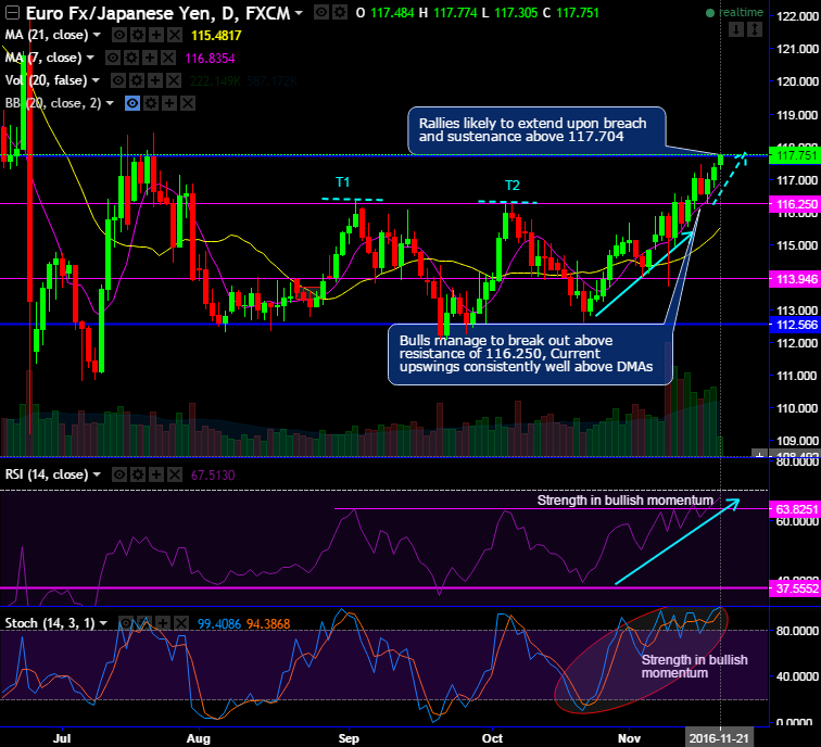 Trade tips: As a result of above technical reasoning, on speculative grounds we see one touch binary calls for targets of 117.996 levels. This strategy is likely to fetch leveraged yields than spot FX and mind it this is just for an intraday trading perspective, but in long run, this is certainly not yet an ideal time for fresh longs.