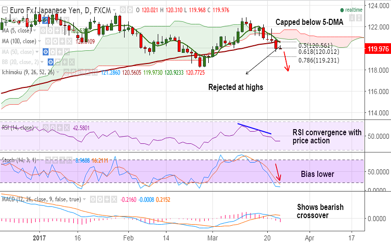 Recommendation: Good to go short on rallies around 120.15/20, SL: 120.60, TP: 119.70/ 119.25/ 119