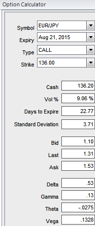 This strategy derives limited returns with unlimited risk that is taken when the options trader thinks that the EURJPY would experience little volatility in the near term. Maximum returns for the short strangle occurs when the exchange price of EURJPY on expiration date is trading between the strike prices of the options sold. At this price, both options expire worthless and the options trader gets to keep the entire initial credit taken as profit.