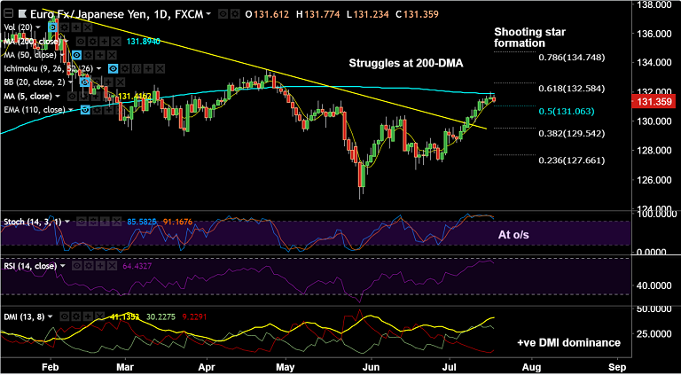 - EUR/JPY struggles to extend break above 200-DMA resistance at 131.90.