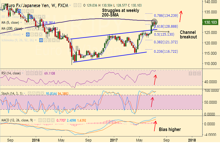 Resistance levels - 130, 130.62 (weekly 200-SMA), 132 (Feb 2016 high)
