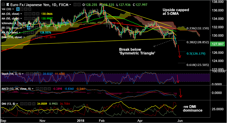 Resistance levels - 128, 128.58 (5-DMA), 129.97 (21-EMA)