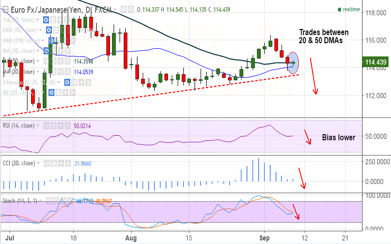 - Major resistance levels - 114.36 (50-DMA), 114.83 (10-DMA), 114.88 (Sept 7 high), 115