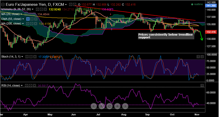 - EUR/JPY is currently trading at 132.41, with immediate resistance at 132.90 (session high), while support is seen at 132.30 (Daily Lows Oct 30/Nov 4)