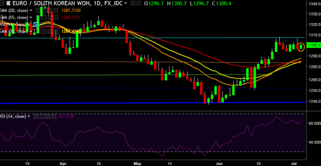- EUR/KRW is currently trading around 1,299 mark.