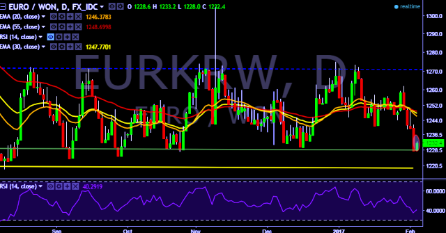 We prefer to take short position in EUR/KRW around 1,235, stop loss at 1,242 and target of 1,222.
