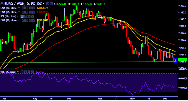 - EUR/KRW is currently trading around 1,281 mark.