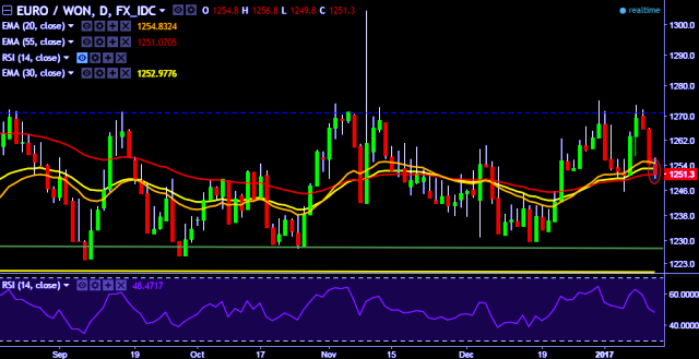 - Pair made intraday high at 1,256 and low at 1,249 levels.