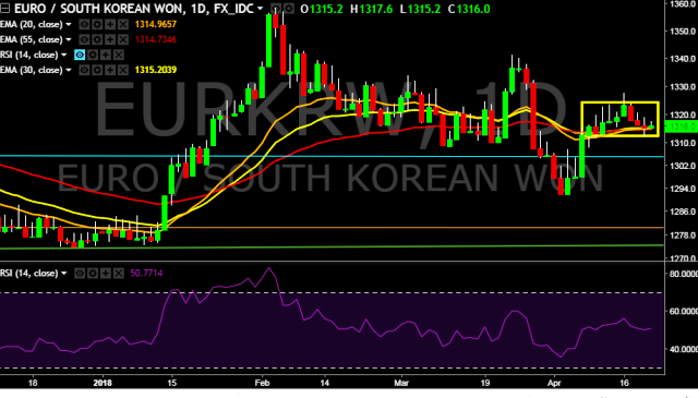 We prefer to take long position on EUR/KRW only above 1,320, stop loss at 1,310 and target of 1,332/1,340.