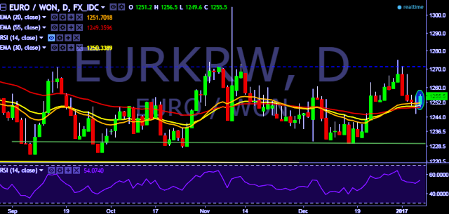 - EUR/KRW is currently trading around 1,255 mark.