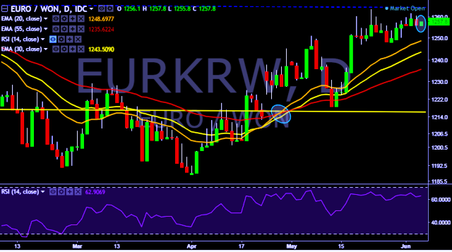 - EUR/KRW is currently trading around 1,257 mark.