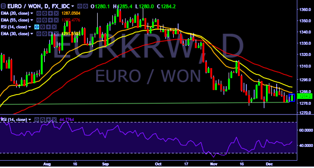 - EUR/KRW is currently trading around 1,284 mark.
