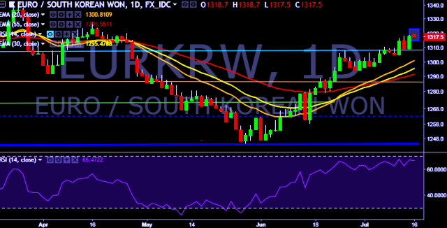 - EUR/KRW is currently trading around 1,316 mark.