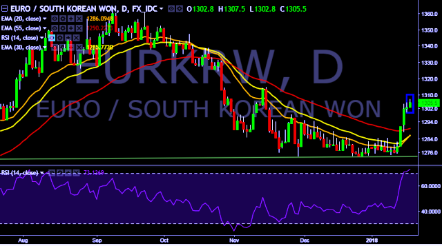 We prefer to take long position on EUR/KRW around 1,302, stop loss at 1,288 and target of 1,313/1,320.