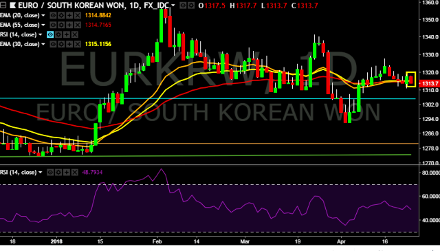 We prefer to take short position on EUR/KRW around 1,315, stop loss at 1,320 and target of 1,305/1,291.
