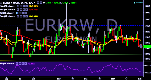 We prefer to take short position in EUR/KRW only below 1,239, stop loss at 1,248 and target of 1,222.