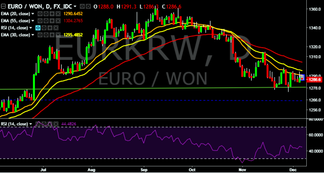 - EUR/KRW is currently trading around 1,286 mark.