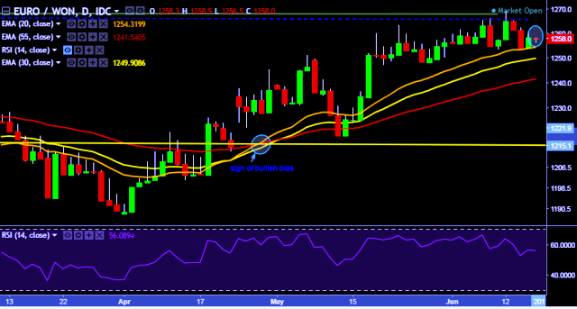 - EUR/KRW is currently trading around 1,257 mark.