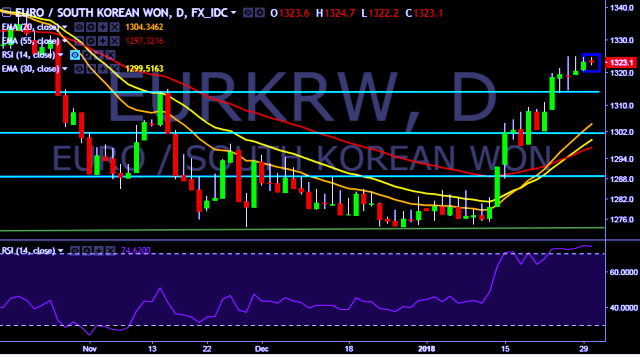 We prefer to take long position on EUR/KRW only above 1,324, stop loss at 1,318 and target of 1,338.