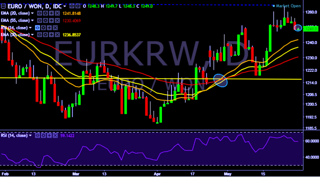 We prefer to take short position in EUR/KRW only below 1,247, stop loss at 1,255 and target of 1,234.