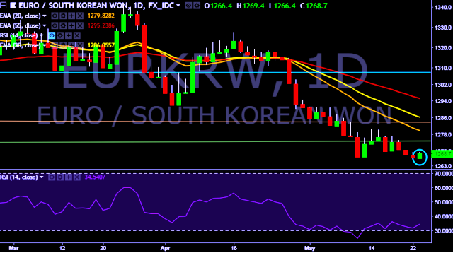 We prefer to take short position on EUR/KRW only below 1,265, stop loss at 1,280 and target of 1,242.