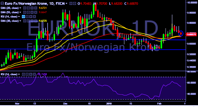 We prefer to take long position on EUR/NOK around 9.6980, stop loss at 9.6820 and target of 9.7228/9.7466.