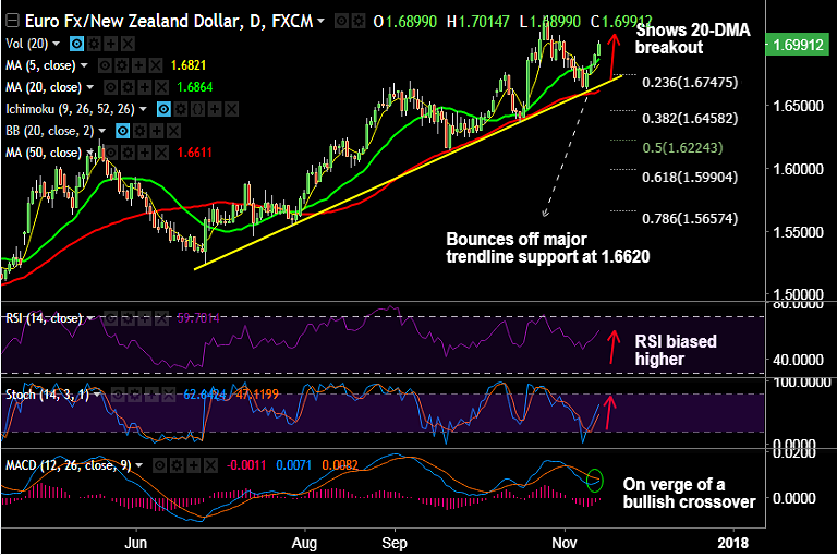 EUR/NZD has shown a decisive break above 20-DMA, scope for further upside.