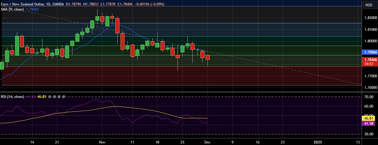 • EUR/NZD declined on Monday as euro was weighed down by concerns about stagnant euro zone growth and a possible government collapse in France.