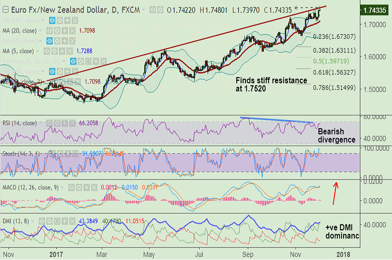 - EUR/NZD edges lower from fresh 2-year highs at 1.7480, bias still higher.
