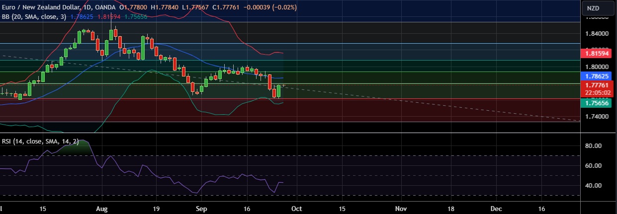 • EUR/NZD recovered to trade last at 1.7774, Price contained between two Fibo retrace levels, 1.7793 and 1.7616.