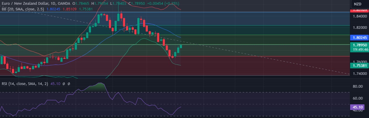 • EUR/NZD rose towards level 1.7900 as kiwi dollar was hit by risk-off sentiment and lower commodities prices.