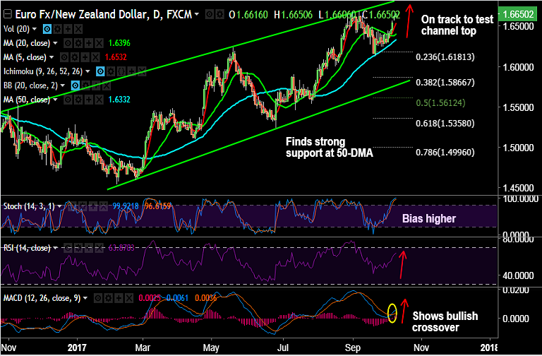 - EUR/NZD extends gains for 6th consecutive session to hit 5-week highs at 1.6649.