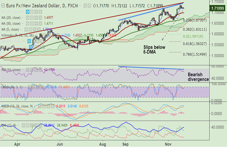 Resistance levels - 1.7214 (5-DMA), 1.7409 (Nov 17 high), 1.7440 (rising trendline)
