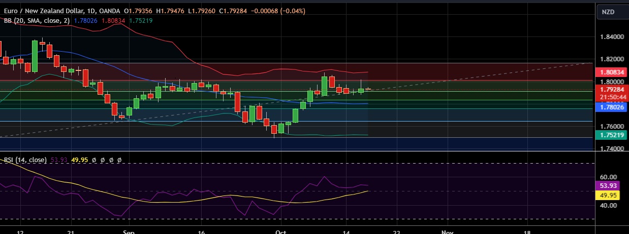 • Immediate resistance is located at 1.8012(23.6%fib), any close above will push the pair towards 1.8091 (Higher BB)