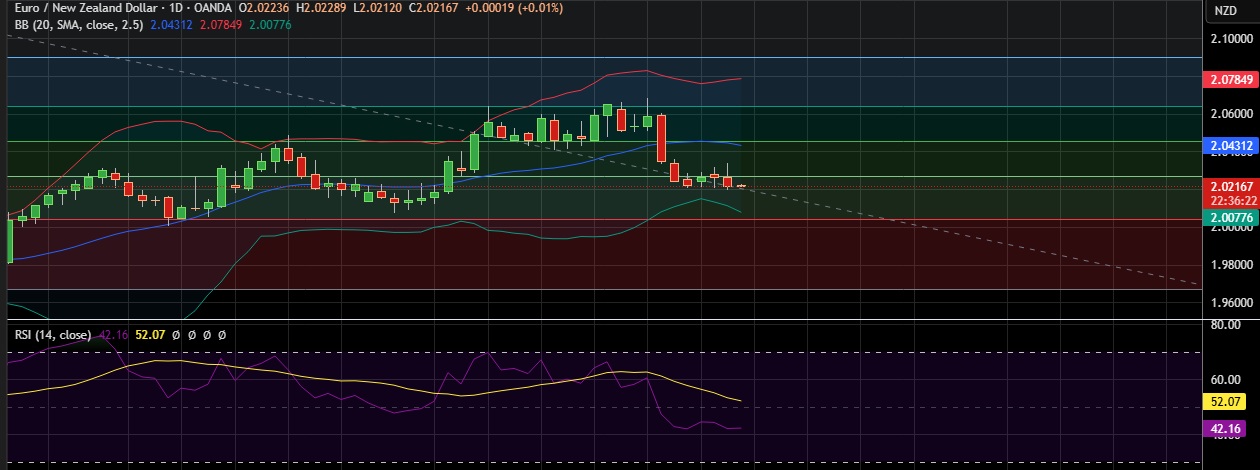 • Immediate support is seen at 2.0073 (Lower BB) and break below could take the pair towards 2.0041(23.6%fib).