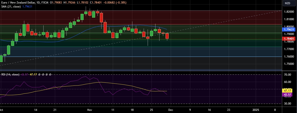 • Support is seen at 1.7824(50%fib) and break below could take the pair towards 1.7761(61.8%fib))
