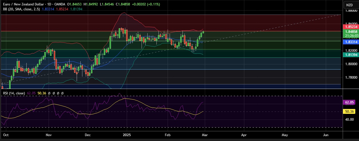 • EUR/NZD rose on Thursday after Trump confirmed March 4 tariffs on Mexico and Canada, plus a 10% duty on Chinese imports.
