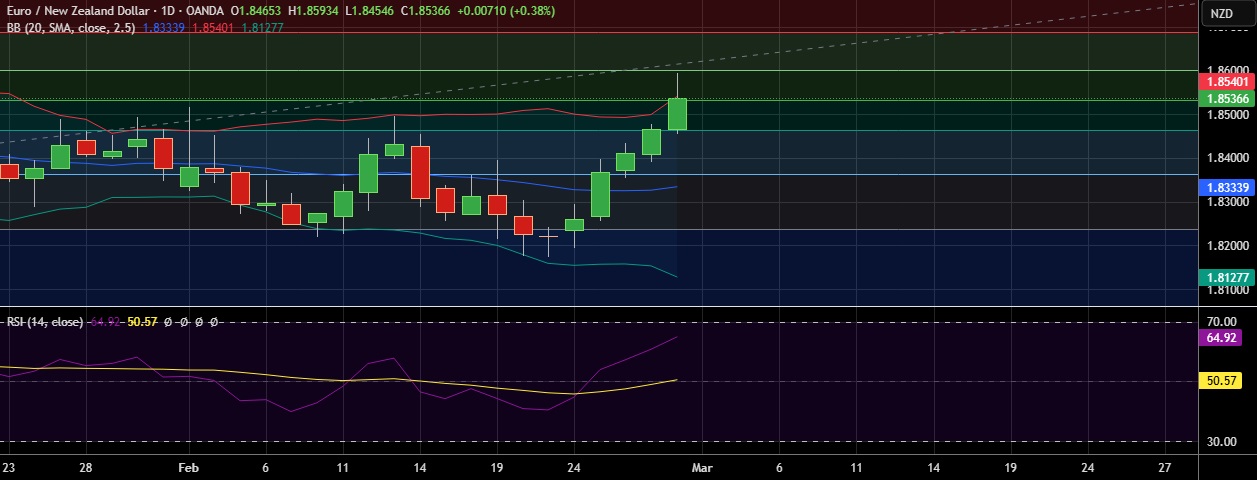 • EUR/NZD initially gained but lost ground after Ukrainian President Zelenskiy's meeting with U.S. President Trump ended in failure.