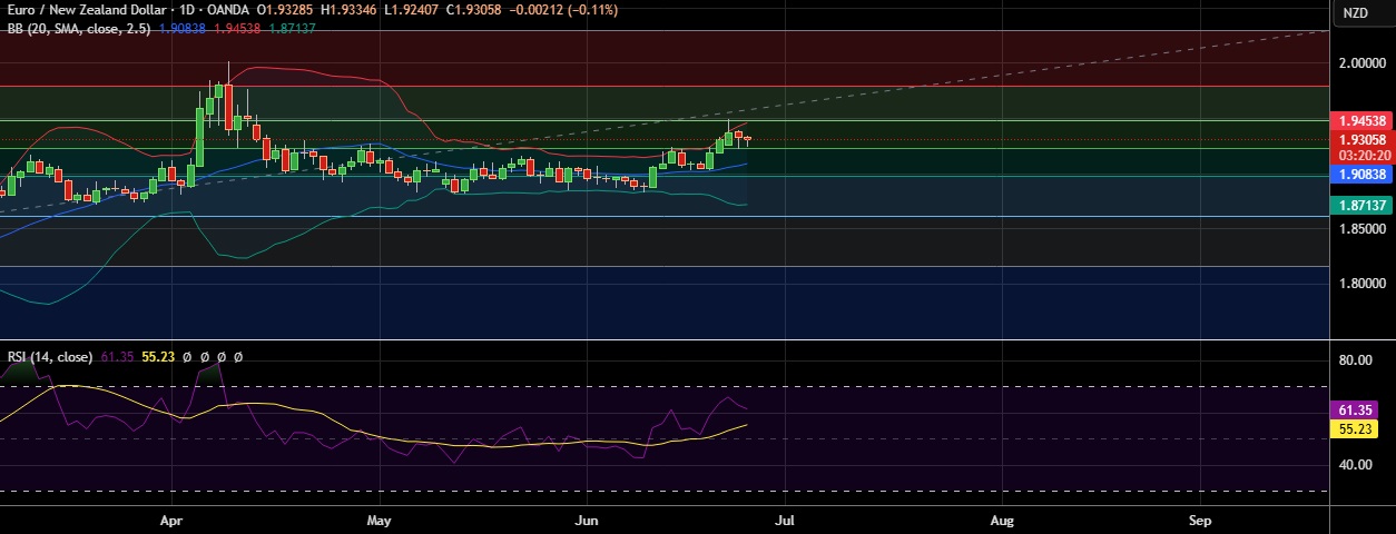 • EUR/NZD eased slightly on Wednesday as investors digested the fragile Israel-Iran ceasefire that brought relief to rattled markets.