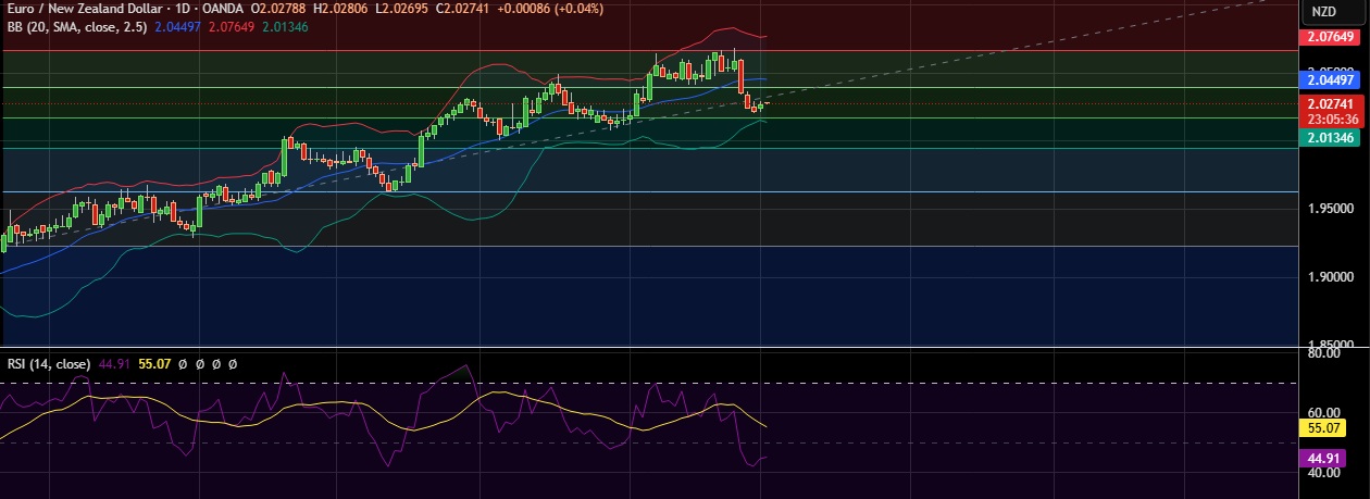 • Immediate support is seen at 2.0169 (50%fib) and break below could take the pair towards 2.0130(Lower BB).