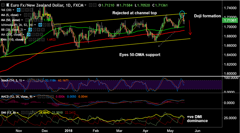 - On the flipside, retrace above 5-DMA will see test of channel top at 1.7285. Break out at channel top negates bearish bias.