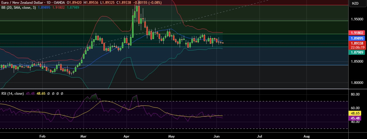 • Immediate support is seen at 1.8848(61.8%fib) and break below could take the pair towards 1.8793(Lower BB).